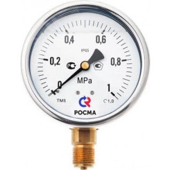 МАНОМЕТР общетехнический 63мм, Тип - ТМ-310Р, радиальное присоединение. 0-0,1MPa. Резьба G1/4. Класс точности 2