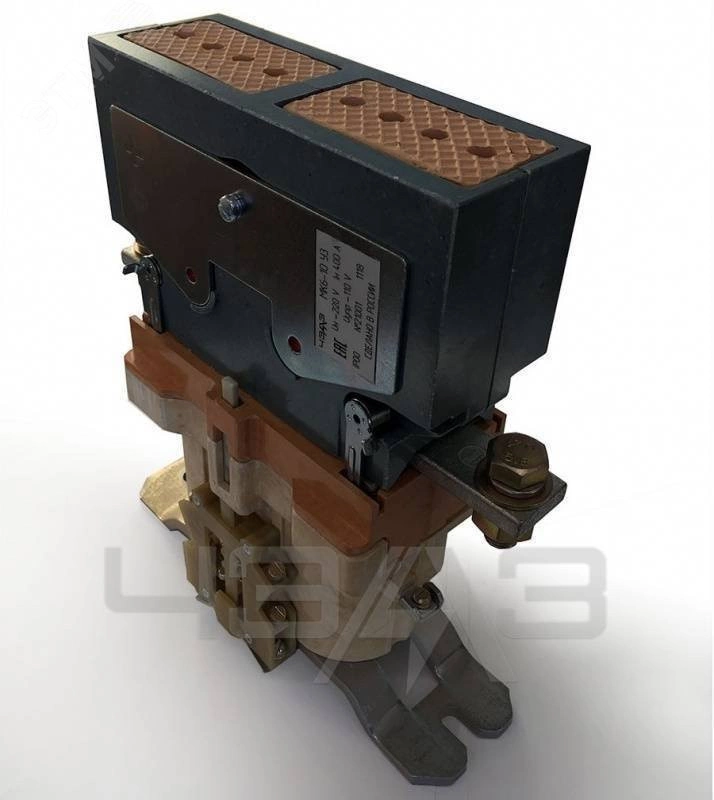 Нереверсивный электромагнитный контактор постоянного тока МК6-10 220В Dс / 75В Dс 400А производится согласно ТУ16-88 ИГФР.644513.004 ТУ и предназначен для работы в силовых электрических цепях подвижного состава железнодорожного транспорта. Два однотипных контактора с замыкающими главными контактами, расположенные рядом, допускают установку механической блокировки. Контактор МК6-10 У3 гл.к.1З всп. 2З+2Р допускает установку как на изоляционных или металлических заземленных панелях, так и на рейках. Конструкция контактов вспомогательной цепи допускает преобразование замыкающих контактов в размыкающие и наоборот. При этом число размыкающих контактов контактора должно быть не более 50 % от общего числа контактов вспомогательной цепи.