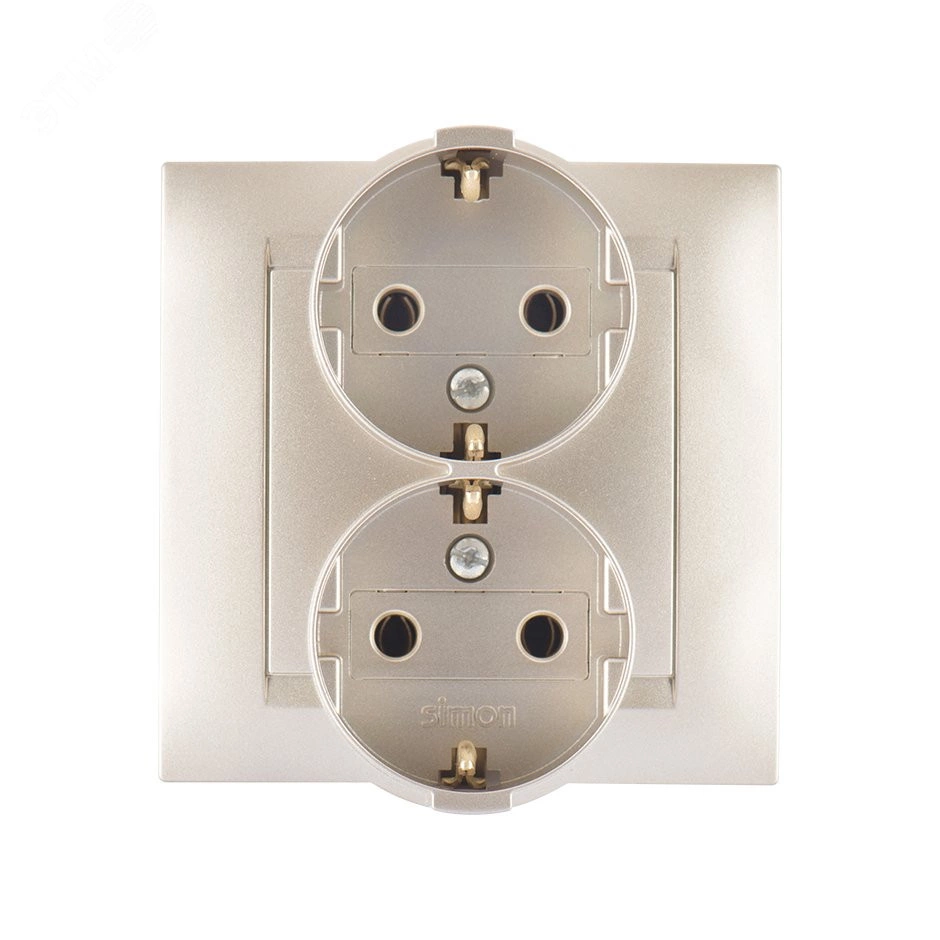 15 Розетка двойная скрытая с заземлением 2х2Р+Е 16А 250В винтовые зажимы шампань