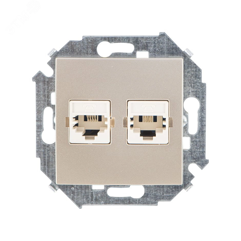 15 Розетка телефонная двойная скрытая 2хRJ11 винтовые зажимы шампань