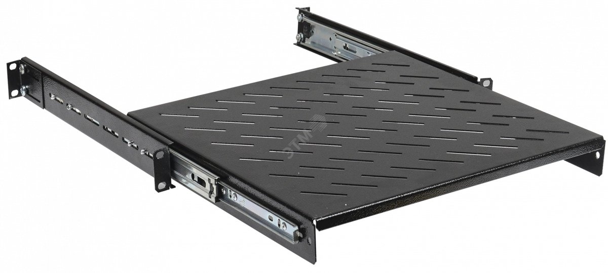 Полки для шкафов и стоек ITK предназначены для размещения на них внутри шкафа оборудования, приборов и аппаратуры, не имеющих кронштейнов и уголков крепления на 19' профили напрямую. К такому оборудованию относятся аккумуляторные батареи, не стоечные ИБП, KVM-консоли, измерительные приборы, медицинское оборудование и прочее.Выдвижные полки крепятся на фронтальные и на задние профили, имеют перфорированную поверхность для обеспечения лучшего охлаждения и отведения теплых воздушных потоков, а за счёт наличия специальных телескопических салазок способны плавно выдвигаться вперед за пределы рабочей плоскости, образованной передней парой 19'' профилей. Данные полки рассчитаны на оборудование, требующее регулярного обслуживания и извлечения из шкафа, но с небольшой общей массой, чтобы избежать его опрокидывание и возможной поломки выдвижного механизма полки.