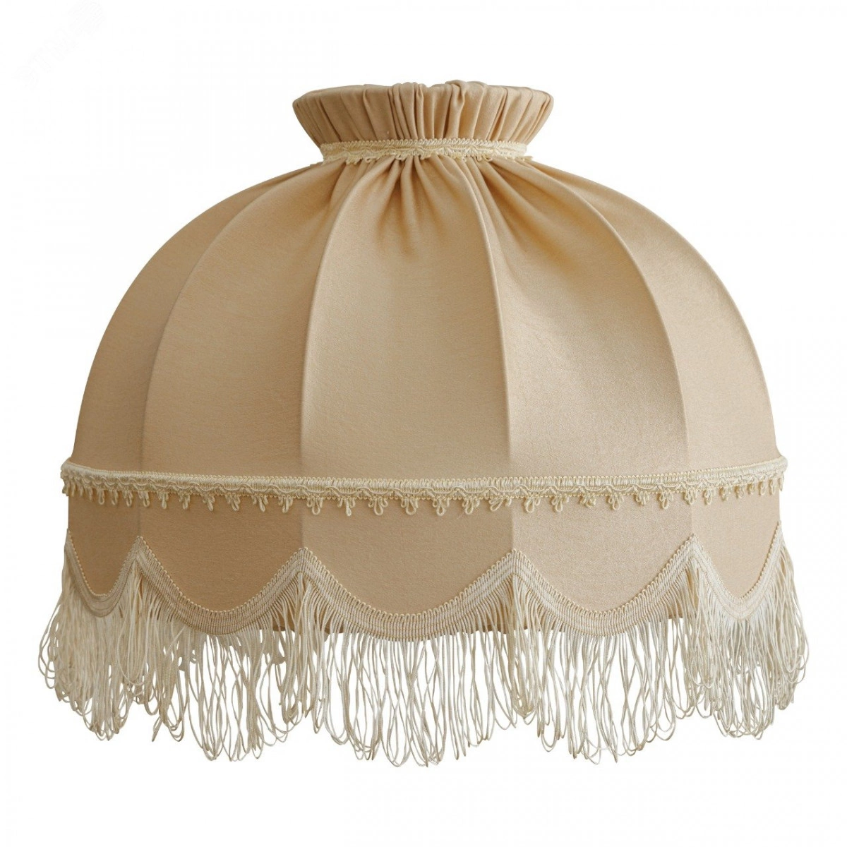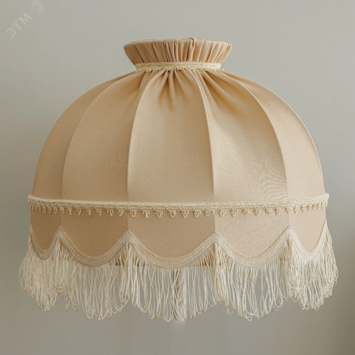 Роскошный АБАЖУР РЕТРО ДЛЯ ПОДВЕСНОГО СВЕТИЛЬНИКА станет украшением Вашего дома. А его мягкий свет подарит атмосферу уюта и комфорта. ГАБАРИТЫ. Высота абажура – 37 см, верхний диаметр – 18 см, нижний диаметр – 49 см. АБАЖУР ОТШИТ ИЗ ТКАНИ софт. Ворсистая с лицевой стороны и гладкая с изнанки, с деликатным блеском, она хорошо ложится в складки и драпировки, прекрасно подходит для оформления интерьера. ЦВЕТ ткани – шампань, нежный, очень светлый оттенок. Абажур исполнен в стиле ретро и декорирован бахромой. Абажур смотрится элегантно в дневное время, а в вечернее дарит красивый, мягкий свет, который преображает пространство вокруг, делает его по-домашнему уютным. КАРКАС АБАЖУРА изготовлен из проволоки d-4 мм, что придает стабильность и прочность, но дополнительно не утяжеляет его.