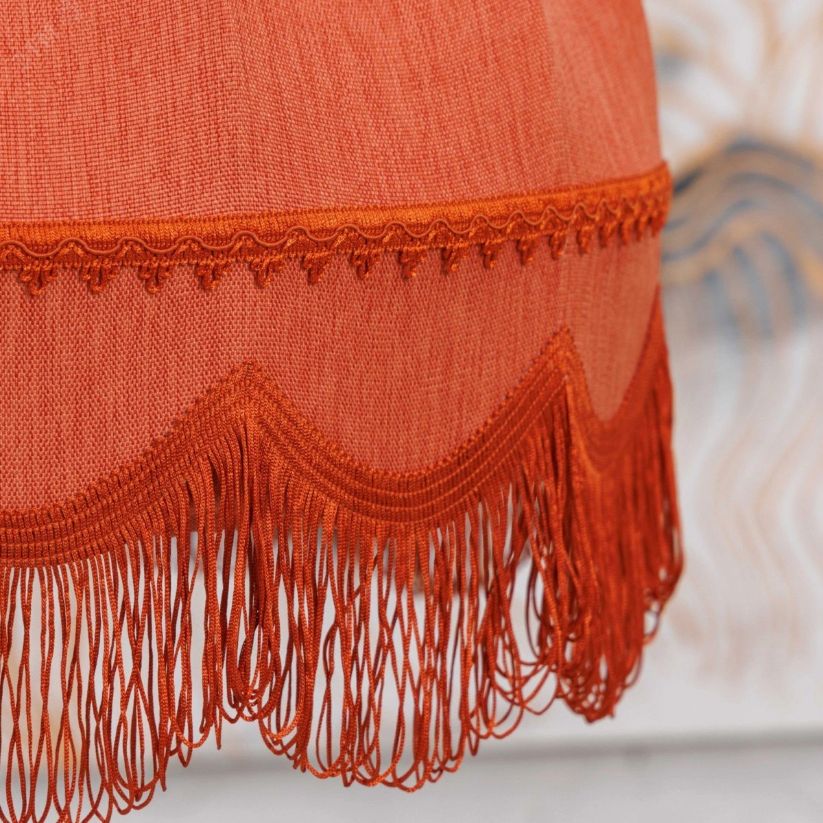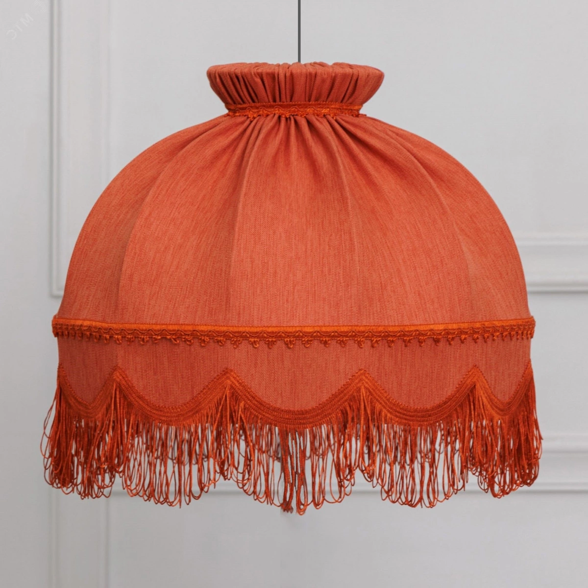 Роскошный абажур ретро для подвесного светильника станет украшением Вашего дома. Он смотрится нарядно и празднично в дневное время, а в вечернее дарит красивый, мягкий свет, который преображает пространство вокруг, делает его по-домашнему уютным. Абажур - из льняной ткани. Цвет - терракот, активный, интересный красный оттенок. Абажур исполнен в стиле ретро, декорирован тесьмой и бахромой. Каркас изготовлен из проволоки d-4 мм, что придает стабильность и прочность, но дополнительно не утяжеляет абажур. Абажур предназначен для светильников с патроном Е27.