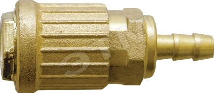 Адаптер с запорным клапаном. Внутреннее быстросъемное соединение - адаптер-соединитель (елочка) 6Iмм. С прямым подключением шланга, под ключ S-20. Совместим с ниппелями всех типов. Материал - латунь.