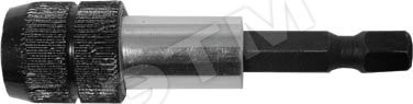 Магнитный, для быстрой смены бит, с дополнительным кольцевым фиксатором. Держатель и хвостовик из инструментальной стали.
