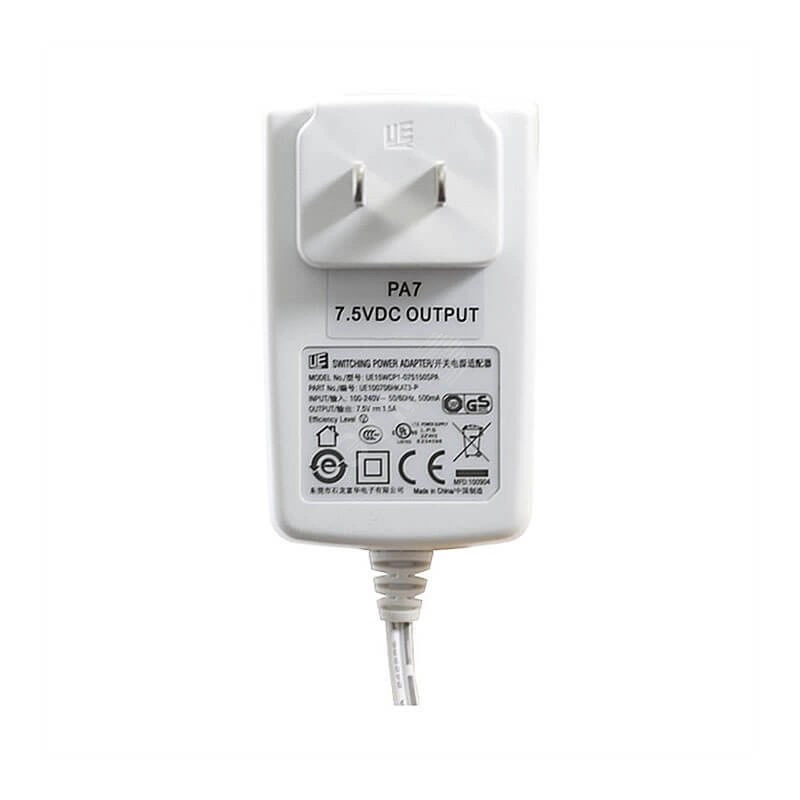 Обеспечивает 7,5 В постоянного тока при 1 А макс. Включает 1 из 5 различных розеток ACPEU (Европа), ACPAUS (Австралия), ACPCH (Китай), ACPUK (Великобритания) и ACPUL (Северная Америка). Длина провода 182,9 см (6 футов).