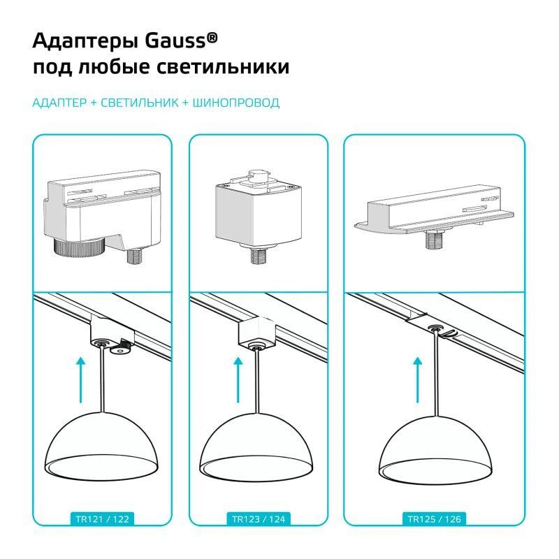 Полное описание: Адаптер Track однофазный для подключения светильника к трековой системе с фиксирующей шайбой бел. GAUSS TR125