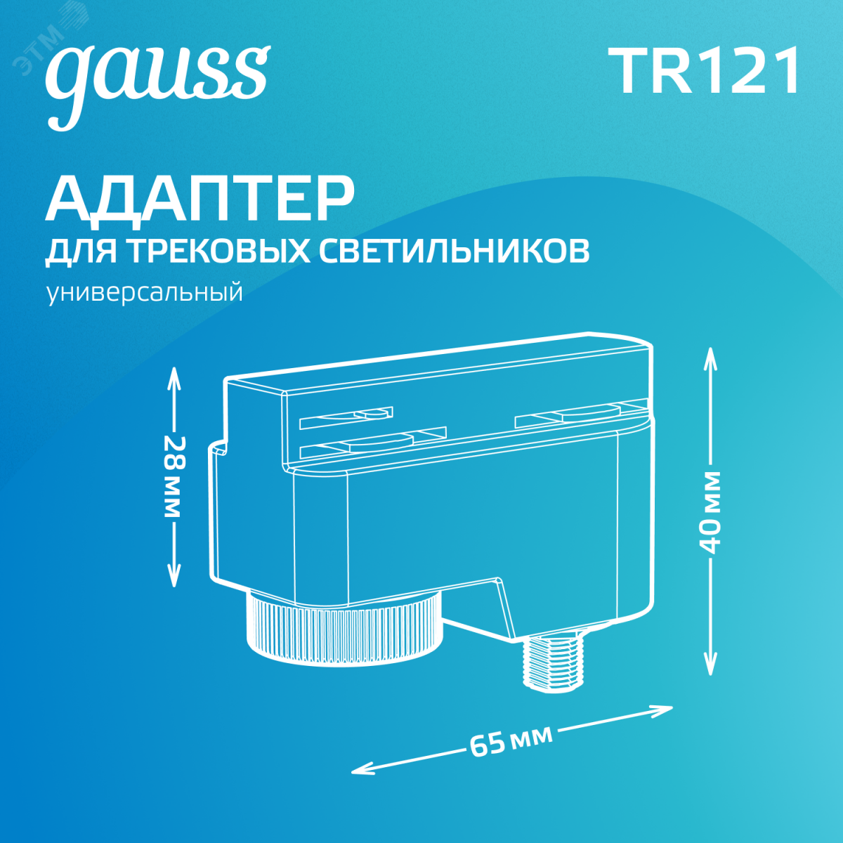 Адаптер универсальный для подключения светильника к трековой системе AC 220В Белый IP20 Track Gauss