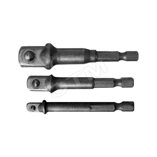 Под головки с хвостовика под биты. В наборе - 3 адаптера (1/4', 3/8', 1/2'). Материал - легированная сталь. Упаковка - блистер.