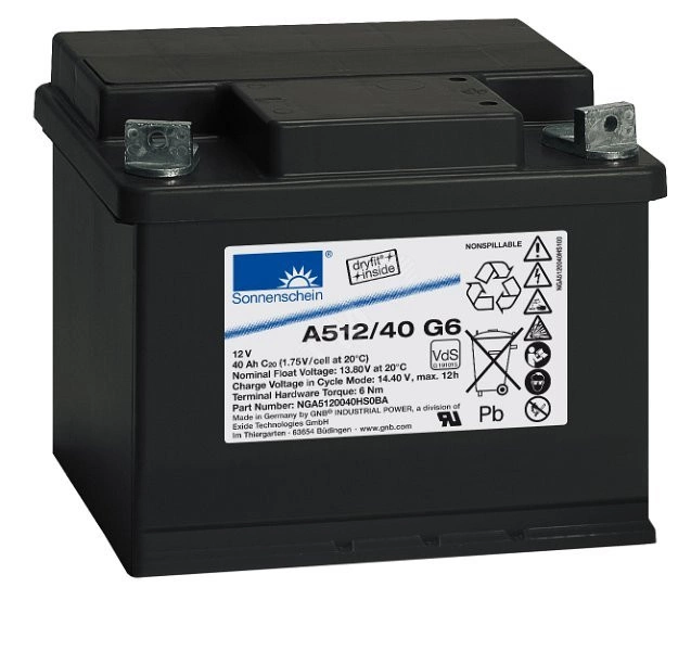 Свинцово-кислотный аккумулятор Sonnenschein A512/40 G6 (ёмкость 40 Ач, напряжение 12 В) предназначен для эксплуатации в буферном и циклическом режимах. Использование технологии Dryfit даёт целый ряд преимуществ - повышенный срок службы (до 12 лет), снижена возможность протекания электролита (он загущен до желеобразного состояния), не требуется доливать воду (рекомбинация газов происходит внутри корпуса), устойчивость к внутренним коротким замыканиям и глубоким разрядам, работа в широком диапазоне температур. Корпус выполнен из неокисляемого долговечного пластика и полностью герметичен.