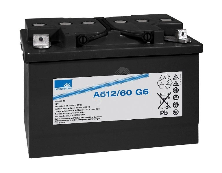 SONNENSCHEIN a512/60.0 G6- полностью необслуживаемый свинцово-кислотный аккумулятор промышленного назначения. Данная серия предназначена для эксплуатации в источниках резервного питания, в системах охранных и пожарных сигнализаций, на телекоммуникационных предприятиях, в электротранспорте, в приборах и оборудовании, а также в системах электроснабжения потребителей высокого уровня ответственности. Батареи также подходят для установки на речном или морском транспорте (есть сертификат Российского Речного и Морского регистра). Батарея a512/60.0 G6 может эксплуатироваться в циклическом режиме с чередованием разрядов и зарядов или в режиме постоянного подзаряда с обеспечением питания нагрузки в случаях аварийного отключения электроэнергии.