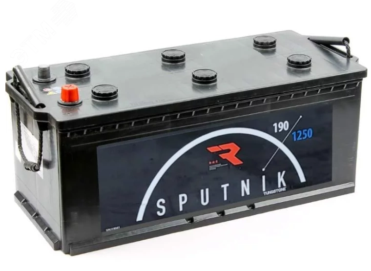 Sputnik 6СТ-190L(3) болт - аккумулятор емкостью 190 Ач обратной полярности. Пусковой ток - 1250 А. Название L указывает на то, что батарея обладает малым расходом воды и не требует дополнительной доливки в течение всего срока службы. Пластины аккумулятора устойчивы к коррозии, а сплав токоотводов содержит ряд легирующих элементов для улучшения механической прочности и коррозионной стойкости, что значительно продлевает ресурс аккумуляторной батареи даже в самых сложных условиях эксплуатации.