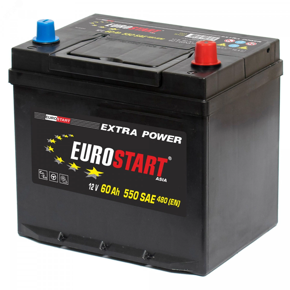 Аккумулятор автомобильный EUROSTART Extra Power Asia 60Ah R+ (нижний борт)