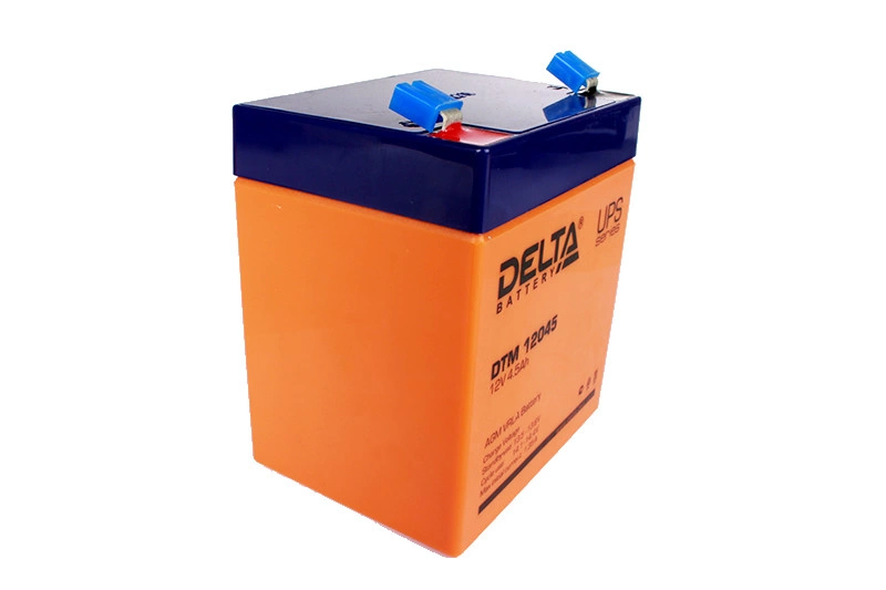 Герметизированный VRLA cвинцово-кислотный аккумулятор Delta DTM 12045 напряжением 12В и емкостью 3.2Ач изготовлен по технологии AGM (с микропористым заполнителем, пропитанным электролитом). Корпус изготовлен из негорючего ABS пластика. Срок службы аккумулятора достигает 6 лет. Аккумулятор предназначен для работы в режиме постоянного подзаряда (буферный режим) или в режиме разряд-заряд (циклический режим). Обладает низким внутренним сопротивлением и саморазрядом.