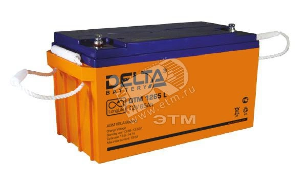 Герметизированный VRLA cвинцово-кислотный аккумулятор Delta DTM 1255 L напряжением 12В и емкостью 55Ач изготовлен по технологии AGM (с микропористым заполнителем, пропитанным электролитом). Корпус изготовлен из негорючего ABS пластика. Срок службы аккумулятора достигает 12 лет. Аккумулятор предназначен для работы в режиме постоянного подзаряда (буферный режим) или в режиме разряд-заряд (циклический режим). Обладает низким внутренним сопротивлением и саморазрядом.