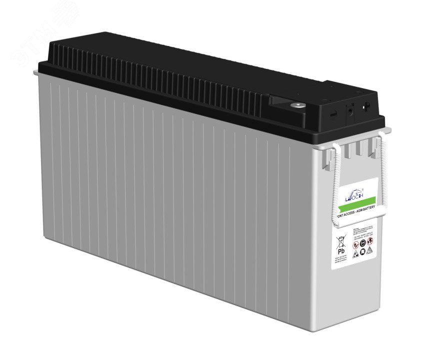 Фронт-терминальный аккумулятор Leoch FT 12-150 (ёмкость 150 Ач, напряжение 12 В) необслуживаемый (не требуется доливать воду), работает в циклическом (260 циклов при 100% глубине разряда) и буферном режиме (12 лет), применяется в ИБП, телекоме, пожарных и охранных системах. Корпус батареи выполнен из прочного ABS пластика, а на крышке располагается односторонний клапан избыточного давления. Благодаря использованию технологии AGM жидкий электролит удерживается в неподвижном состоянии стекловолоконными сепараторами. Фронт-терминальное расположение клемм заметно упрощает и удешевляет эксплуатацию.