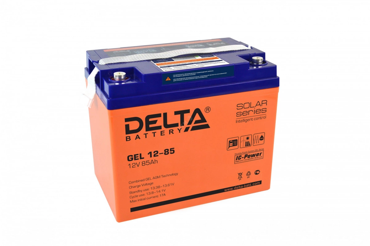 Свинцово-кислотный аккумулятор Delta GEL 12-85 напряжением 12В и емкостью 85Ач изготовлен по технологии AGM+GEL - combined AGM and GEL technology (частичное сгущение электролита). Устойчив к глубоким разрядам. Дополнительно аккумулятор оснащен LCD дисплеем, отображающем различные статусы работы аккумулятора. Корпус изготовлен из негорючего ABS пластика. Срок службы аккумулятора достигает 10-12 лет. Аккумулятор предназначен для работы в режиме постоянного подзаряда (буферный режим) или в режиме разряд-заряд (циклический режим). Обладает низким внутренним сопротивлением и саморазрядом.