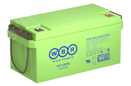 Аккумуляторная батарея WBR GP 12650 - герметизированные, выполненные по технологии AGM, свинцово-кислотные аккумуляторные батареи общего применения со сроком службы до 8 лет в буферном режиме или 260 циклов заряда-разряда в циклическом режиме при 100% разряде. Эти высокоэффективные перезаряжаемые батареи не требуют обслуживания в течение всего срока службы.