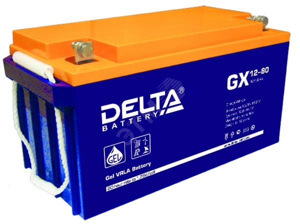 Герметизированный VRLA cвинцово-кислотный аккумулятор Delta GX 12-80 напряжением 12В и емкостью 80Ач изготовлен по технологии GEL (композитный гель вместо электролита). Устойчив к глубоким разрядам. Корпус изготовлен из негорючего ABS пластика. Срок службы аккумулятора достигает 15 лет. Аккумулятор предназначен для работы в режиме постоянного подзаряда (буферный режим) или в режиме разряд-заряд (циклический режим). Обладает низким внутренним сопротивлением и саморазрядом.