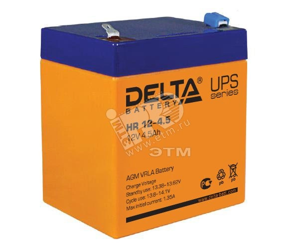Герметизированный VRLA cвинцово-кислотный аккумулятор Delta HR 12-5.8 напряжением 12В и емкостью 5.8Ач изготовлен по технологии AGM (с микропористым заполнителем, пропитанным электролитом). Корпус изготовлен из негорючего ABS пластика. Срок службы аккумулятора достигает 8 лет. Аккумулятор относится к линейке DELTA UPS series и предназначен для работы в системах бесперебойного питания (ИБП). Обладает низким внутренним сопротивлением и высокой плотностью энергии.