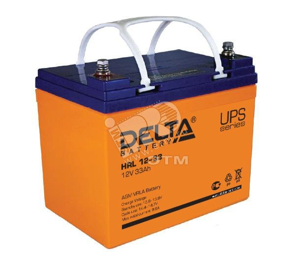 Герметизированный VRLA cвинцово-кислотный аккумулятор Delta HRL 12-33 напряжением 12В и емкостью 33Ач изготовлен по технологии AGM (с микропористым заполнителем, пропитанным электролитом). Корпус изготовлен из негорючего ABS пластика. Срок службы аккумулятора достигает 12 лет. Аккумулятор относится к линейке DELTA UPS series и предназначен для работы в системах бесперебойного питания (ИБП), системах связи, ЦОД. Обладает низким внутренним сопротивлением и высокой плотностью энергии.