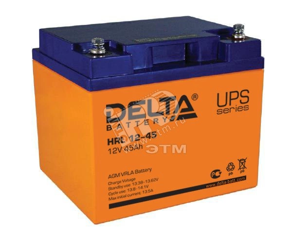 Delta HRL 12-45 X – это обновленный в 2018 году выпускавшийся с 2003 года аккумулятор Delta HRL 12-45 из серии аккумуляторов Delta HRL (UPS Series). Аккумулятор сменил цвет с оранжевого на синий и в маркировке получил дополнительный индекс «X». Герметизированный VRLA cвинцово-кислотный аккумулятор Delta HRL 12-45 X напряжением 12В и емкостью 45Ач изготовлен по технологии AGM (с микропористым заполнителем, пропитанным электролитом). Корпус изготовлен из негорючего ABS пластика. Срок службы аккумулятора достигает 12 лет. Аккумулятор относится к линейке DELTA UPS series и предназначен для работы в системах бесперебойного питания (ИБП), системах связи, ЦОД. Обладает низким внутренним сопротивлением и высокой плотностью энергии.