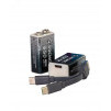 Литий-ионный аккумулятор формата 9В Крона. Популярный формат батареек теперь в виде li-on аккумулятора. Благодаря Li-ion технологии данный аккумулятор имеет более высокую энергоемкость, отсутствие саморазряда и эффекта памяти, долгий срок службы, а также благодаря встроенному гнезду зарядки USB-C обладает лучшей практичностью и удобством в использовании. Напряжение 9В. Отсутствие помех и пульсаций, безопасно для чувствительно техники! Провод в комплекте!
