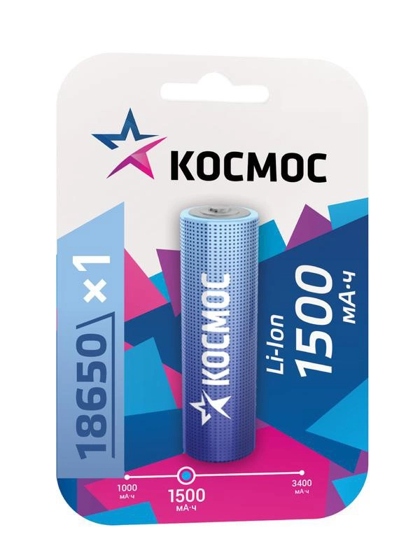 Полное описание: Аккумулятор Li-ion 18650 1500мА.ч без защиты (блист.1шт) КОСМОС KOC18650Li-ion15UBL1
