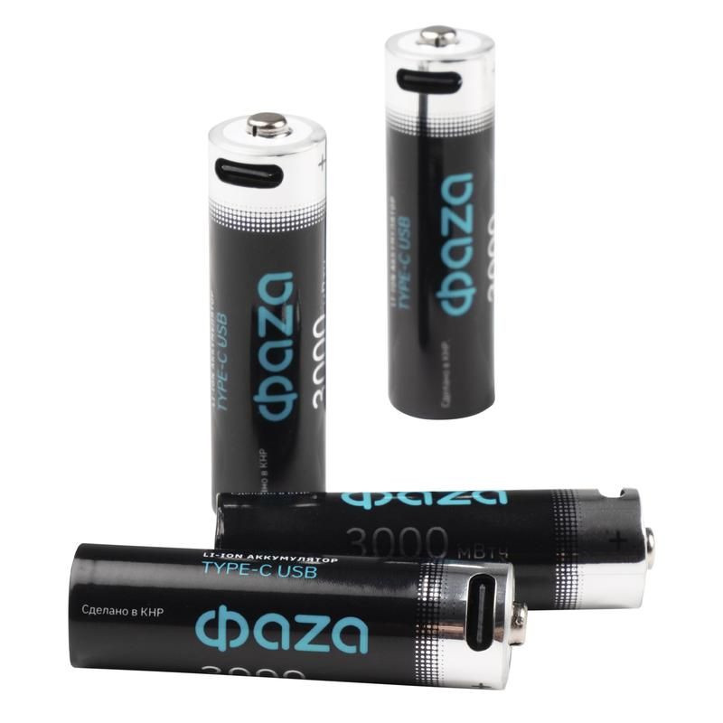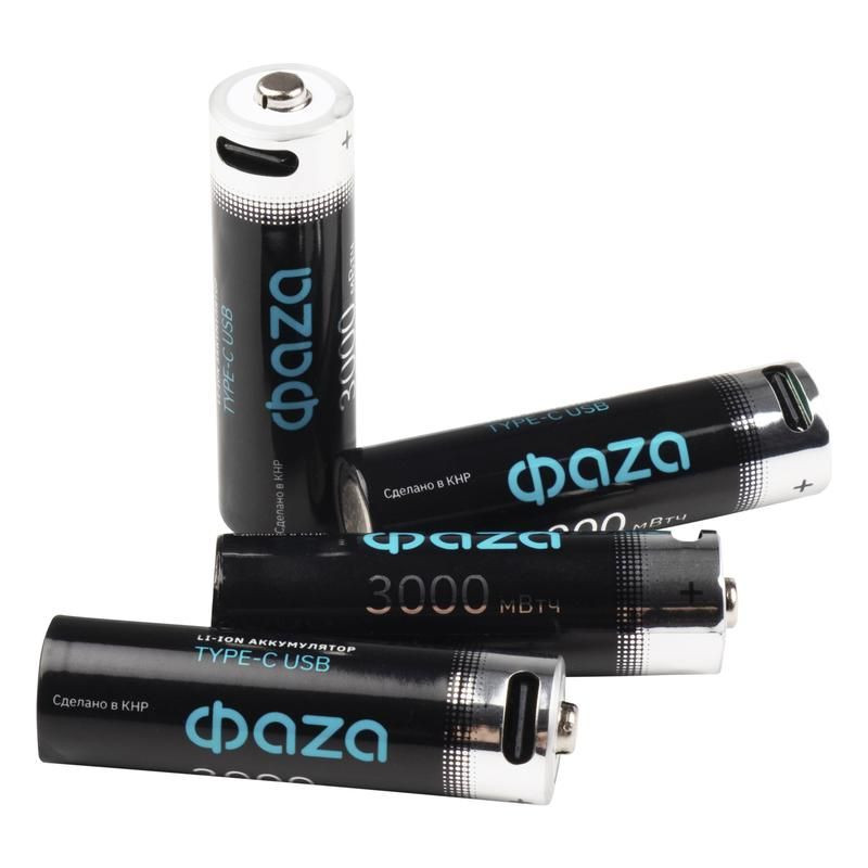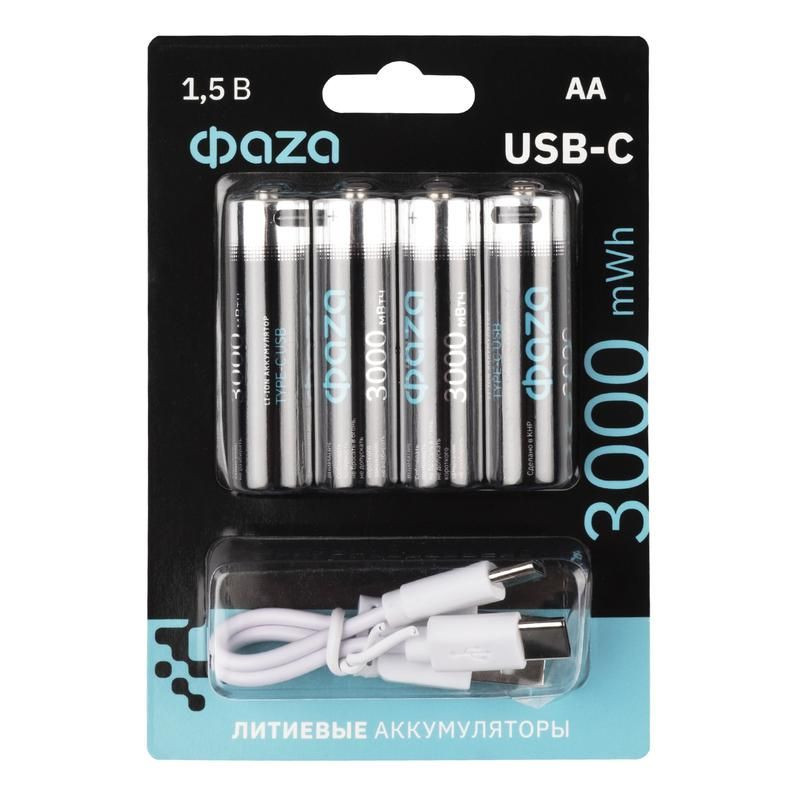 Аккумулятор литиевый AA 1.5В Li-Ion 3000мВт.ч 2000мА.ч зарядка от Type-C шнур в комплекте BL-4 (уп.4шт) ФАZА 5061606