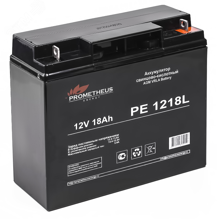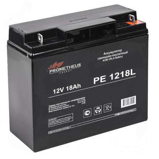 Свинцово-кислотный аккумулятор РЕ 1218L создан по технологии AGM, с абсорбированным электролитом и увеличенным сроком службы. Предлагаемый аккумулятор является не обслуживаемым. Он герметизирован, а образующийся газ рекомбинируется. Долив жидкости не требуется. Корпус аккумулятора изготовлен из негорючего ABS пластика. Емкость аккумуляторной батареи для ИБП составляет 18 Ач, а рабочее напряжение 12 В. Устройство обладает низким саморазрядом(до 3%). Срок службы достигает 10 лет.