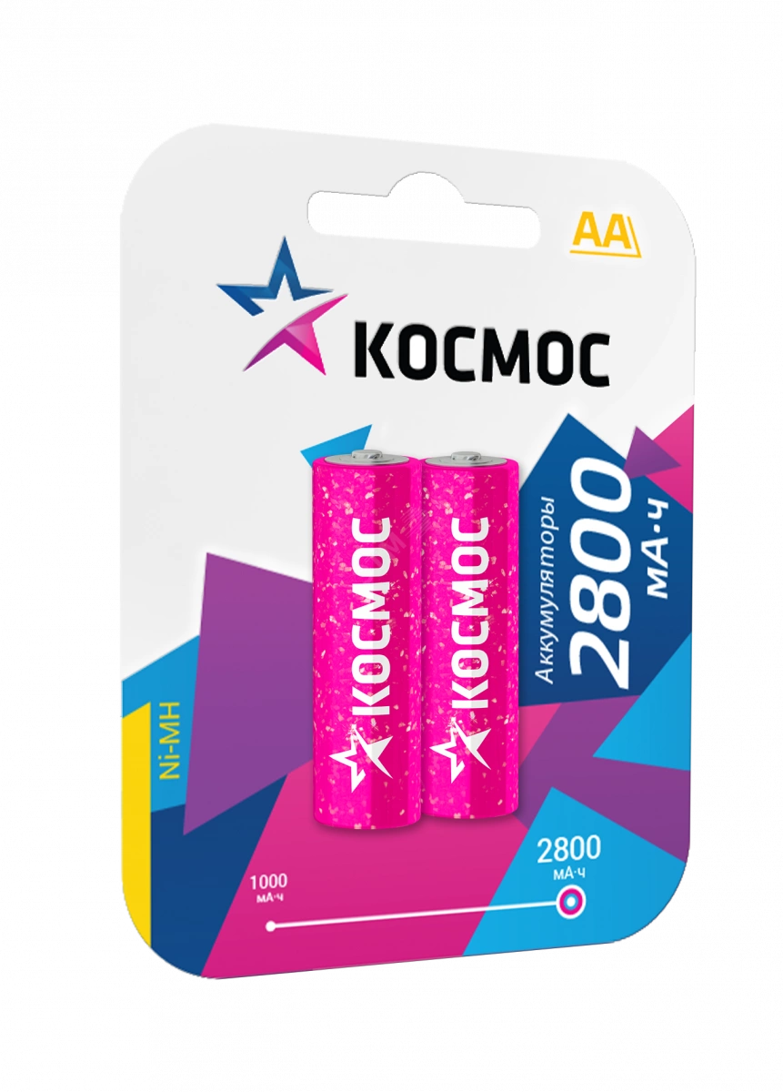 Ni-Mh (никель-металлогидридные) аккумуляторы Космос - заменяют обычные батарейки типоразмера АА также называют ''пальчиковые'' (на приборах-потребителях может обозначаться как LR6, R6, UM3). Быстро окупятся - можно заряжать сотни раз, экономя на обычных батарейках. В упаковке 2 шт - достаточно для большинства приборов. Емкость 2800 мАч - для мощных устройств. Важно - перед первым использованием аккумуляторы нужно зарядить.