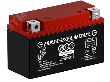Герметизированные, выполненные по технологии AGM, необслуживаемые (MF). стартерные мотоциклетные свинцово-кислотные аккумуляторные батареи WBR. серии МТ обладают высоким качеством и надежностью. Они предназначены для запуска двигателя мотоциклов, скутеров, гидроциклов, квадроциклов, снегоходов. и мотовездеходов. Батареи соответствуют техническим характеристикам и являются. аналогом мотоциклетных аккумуляторных батарей YUASA модели YT7B-BS, YT9B-BS .