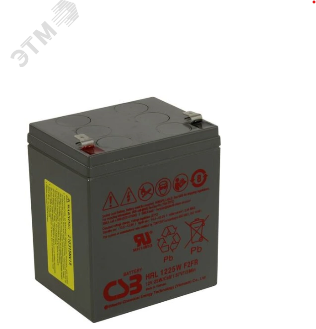 Аккумулятор CSB HRL 1225W емкостью 25 Ач и напряжением 12 В разработан специально для кратковременных разрядов высоким током. Главная особенность батареи — внушительный срок службы, при правильной эксплуатации он может достигать 10 лет. Герметичный корпус из ABS-пластика позволяет использовать CSB HRL 1225W в любом положении, за исключением положения «дном верх» для обеспечения работы предохранительного клапана. Аккумулятор подходит для работы в циклическом и в буферном режиме. Аккумуляторная батарея CSB HRL 1225W имеет усовершенствованную конструкцию легированных кальцием электродов из особо чистого свинца, что обеспечивает продолжительный срок службы и улучшенные разрядные характеристики. Аккумулятор отвечает всем современным требованиям к герметизированным батареям, имеет сертификат соответствия Госстандарта РФ (''Ростест''), заключение ВНИИПО МВД ''О пожаровзрывобезопасности''.