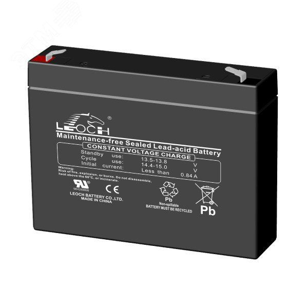 Свинцово-кислотный аккумулятор Leoch DJW12-2.8 предназначен для работы как в буферном (до 8 лет при правильном использовании), так и в циклическом (260 циклов при 100% глубине разряда). Он обладает емкостью 0.8 Ач, напряжением 12 В и применяется в ИБП, охранных и пожарных системах, телекоммуникациях. Жидкий электролит удерживается неподвижно внутри герметичного корпуса стекловолоконными сепараторами (absorbed glass mat), что полностью исключает возможность протечки. На крышке Leoch DJW 12-0.8 располагается односторонний клапан, который позволяет газам внутри корпуса рекомбинировать и сбрасывает избыточное давление.