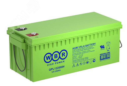 Аккумуляторная батарея WBR серии GPL 122000H - герметизированные, выполненные по технологии AGM, свинцово-кислотные аккумуляторные батареи общего применения со сроком службы 12 лет в буферном режиме или 260 циклов заряда-разряда в циклическом режиме при 100% разряде. Эти высокоэффективные перезаряжаемые батареи не требуют обслуживания в течение всего срока службы.