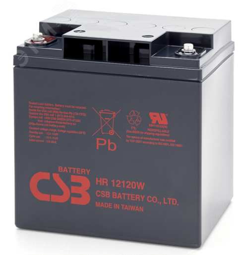 Аккумуляторная батарея CSB HR - (Station), марки HR12120W FR, напряжением 12 В, емкостью Вт/Эл, габаритные размеры длина - 166 мм, ширина - 125 мм, высота корпуса - мм, высота с клеммами - 175 мм. Срок службы - 5 лет, Аккумуляторы серии HR имеют большую мощность по сравнению с другими изделия бренда CSB. Срок службы устройств в режиме постоянной подзарядки составляет 5 лет, при температуре до 25 градусов Цельсия. Батареи также выдерживают 260 циклов до 100% разряда. АКБ HR – это надежные источники дополнительного питания для систем сигнализации, различного промышленного оборудования, UPS, портативного инструмента, электроприборов и т.д.