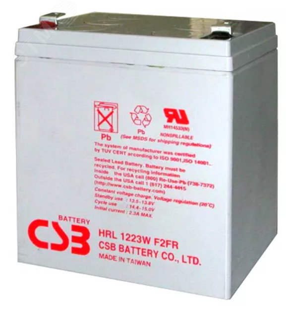 Аккумулятор CSB HRL 1223W емкостью 6 Ач и напряжением 12 В разработан специально для кратковременных разрядов высоким током. Главная особенность батареи — внушительный срок службы, при правильной эксплуатации он может достигать 10 лет. Герметичный корпус из ABS-пластика позволяет использовать CSB HRL 1223W в любом положении, за исключением положения «дном верх» для обеспечения работы предохранительного клапана. Аккумулятор подходит для работы в циклическом и в буферном режиме. Аккумуляторная батарея CSB HRL 1223W имеет усовершенствованную конструкцию легированных кальцием электродов из особо чистого свинца, что обеспечивает продолжительный срок службы и улучшенные разрядные характеристики. Аккумулятор отвечает всем современным требованиям к герметизированным батареям, имеет сертификат соответствия Госстандарта РФ (''Ростест''), заключение ВНИИПО МВД ''О пожаровзрывобезопасности''.