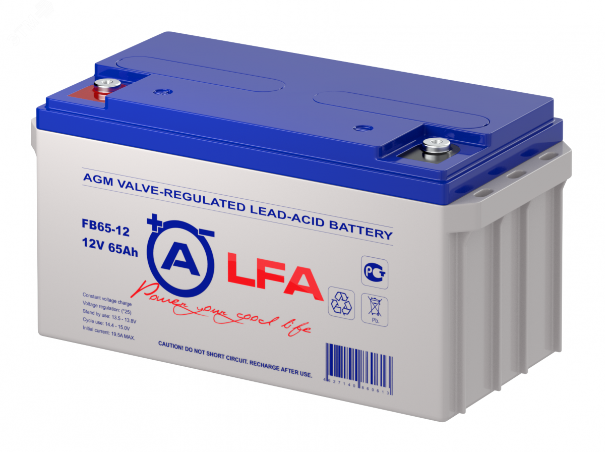 ALFA Battery FB 65-12 — стационарный герметизированный свинцово-кислотный аккумулятор напряжением 12В и емкостью 65Ач. Рекомендованной сферой применения является резервное энергоснабжение систем видеонаблюдения, охраны и безопасности. Аккумуляторные батареи FB 65-12 купить также можно для установки в ИБП, обеспечения резервного питания медицинского, телекоммуникационного и промышленного оборудования, переносного инструмента, приборов контроля и измерения.