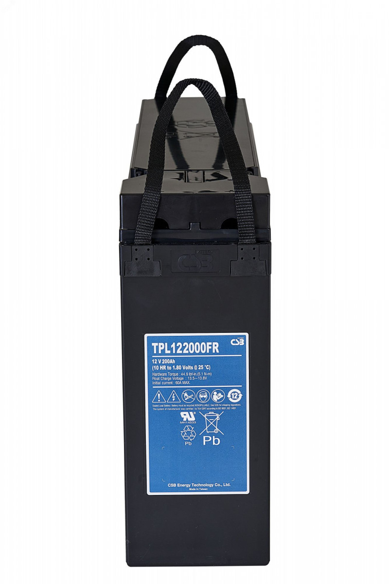 Фронт-терминальный аккумулятор CSB TPL 122000FR (ёмкость 200 Ач, напряжение 12 В) разработан специально для установки в 19” и 23” шкафы и стеллажи. Компактные размеры обеспечивают максимальную плотность энергии на минимальной площади. TPL 122000 FR отличается высокой надёжностью и длительным сроком службы (до 12 лет при правильной эксплуатации), на протяжении которого долив воды не требуется. Жидкий электролит обездвижен стекловолоконными сепараторами (absorbed glass mat), что повышает тепловую устойчивость батарей. Фронт-терминальное расположение клемм существенно упрощает монтаж и обслуживание. Аккумуляторная батарея TPL 122000FR имеет усовершенствованную конструкцию легированных кальцием электродов из особо чистого свинца, что обеспечивает продолжительный срок службы и улучшенные разрядные характеристики.