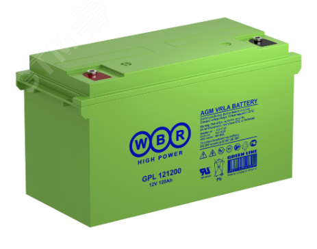 Аккумуляторная батарея WBR серии GPL 121200 - герметизированные, выполненные по технологии AGM, батареи общего применения со сроком службы 12 лет в буферном режиме или 260 циклов заряда-разряда в циклическом режиме при 100% разряде. Эти высокоэффективные перезаряжаемые батареи не требуют обслуживания в течение всего срока службы.
