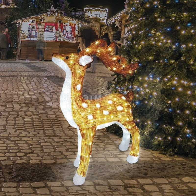 Акриловая светодиодная фигура NEON-NIGHT ''Пятнистый олень'' высотой 75 см, светящаяся более чем 200 яркими диодами, выполнена по специальной технологии нанесения акрила. Она позволит вам создать ту самую, настоящую новогоднюю атмосферу и принести сотни радостных улыбок. Эти яркие, светящиеся объемные фигуры, состоящие из металлического каркаса, акрила и светодиодов, применяются для оформления и создания новогодней атмосферы в кафе, ресторанах, торговых центрах, магазинах, на площадях и перед входом, а также просто в частных домах и квартирах. Все фигуры укомплектованы понижающим трансформатором , что обеспечивает безопасность при контактировании, а также имеют степень защиты IP65, что позволяет использовать их как в помещении, так и на улице.