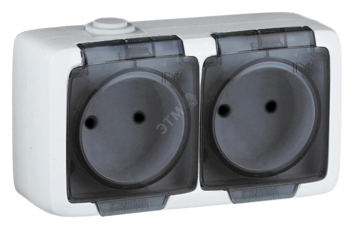 Alfa Розетка двухместная, с пылевлагозащитой, открытой установки, белый