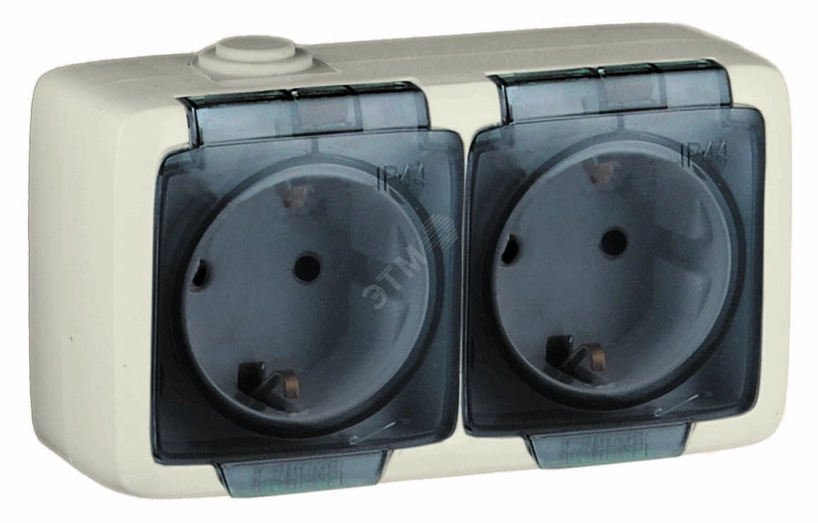 Alfa Розетка двухместная, с пылевлагозащитой, с заземляющими контактами, открытой установки, слоновая кость