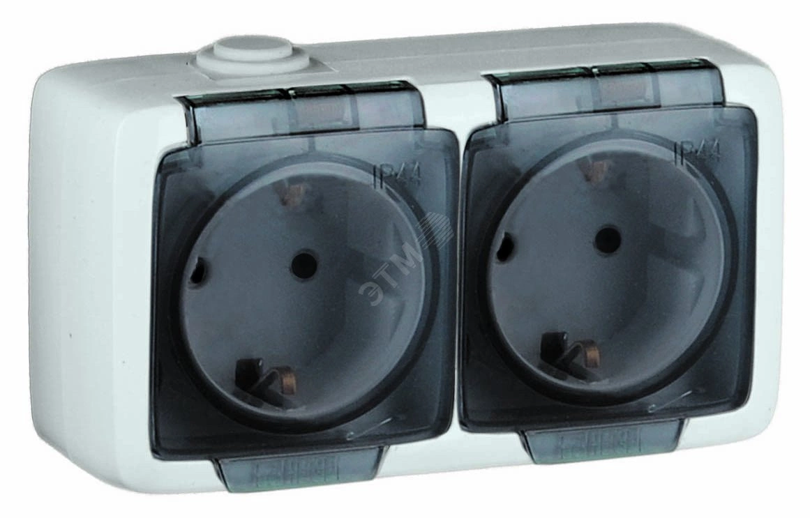 Alfa Розетка двухместная, с пылевлагозащитой, с заземляющими контактами, открытой установки, белый