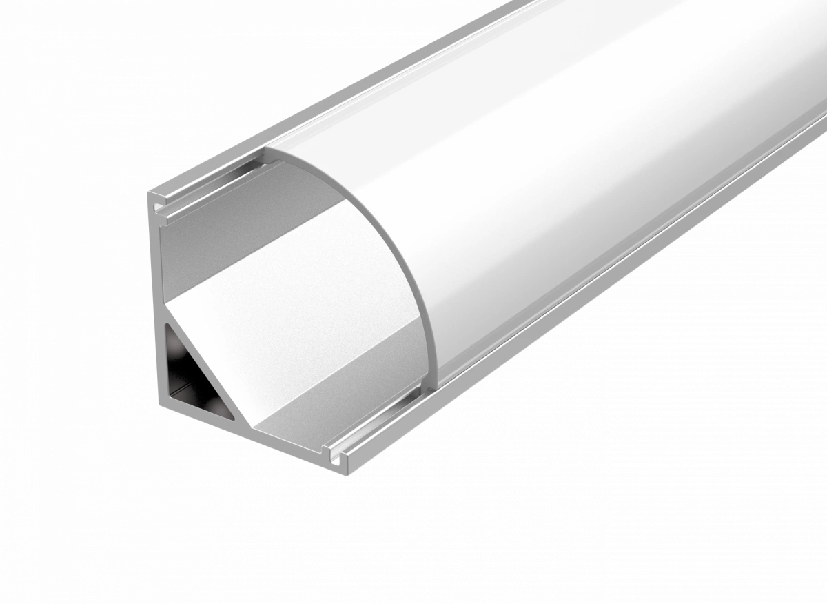 Алюминиевый угловой профиль для LED ленты предназначен для встраиваемого монтажа и поставляется в комплекте с рассеивателем 'опал'. Посадочное место под ленту до 10мм.
