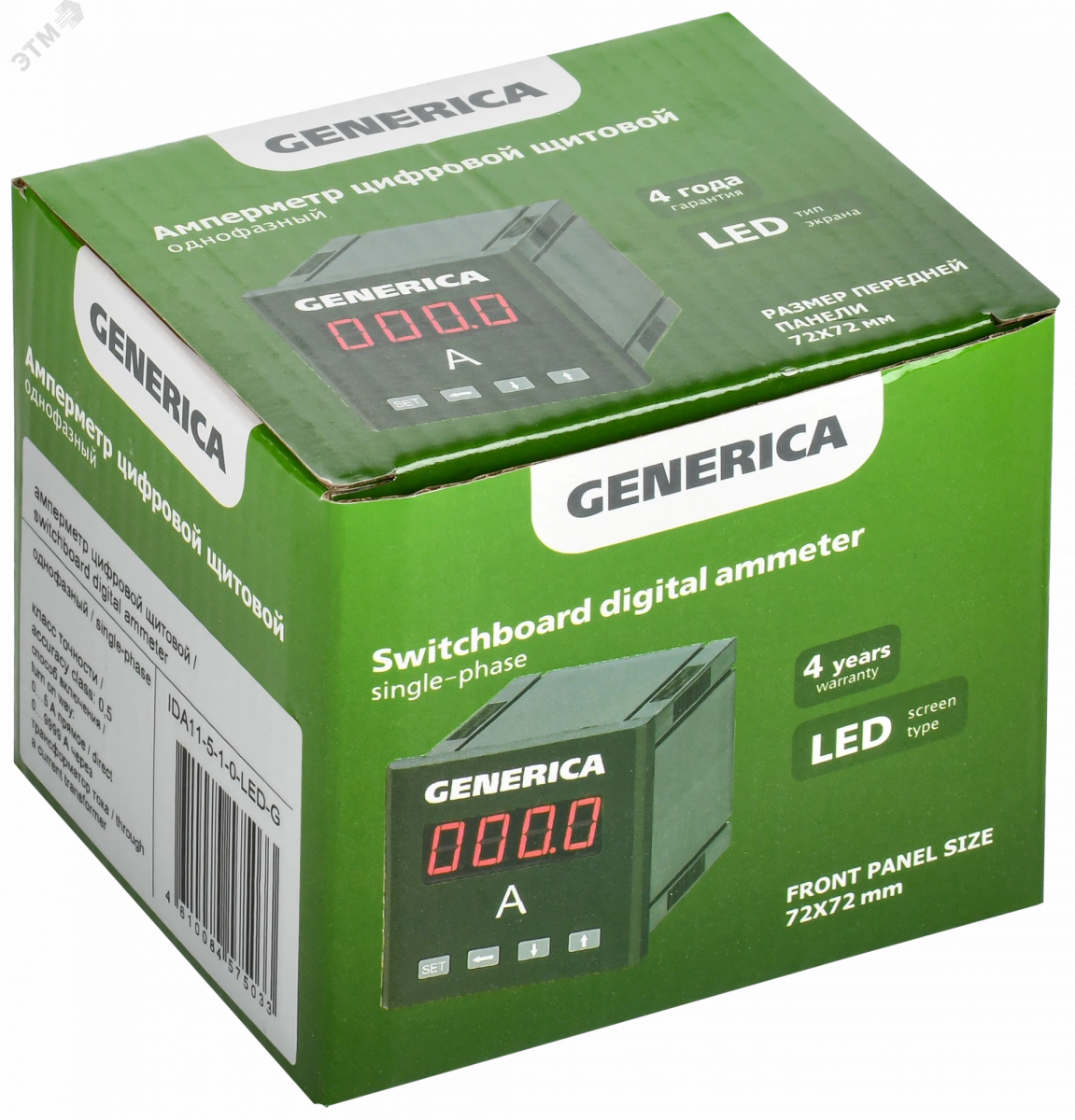 Амперметр цифровой щитовой однофазный 72х72мм LED GENERICA