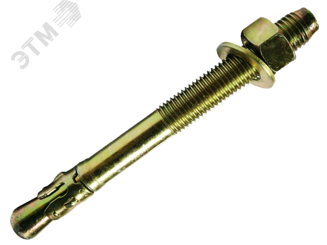Во время закручивания гайки клиновой элемент надежно фиксирует анкер-шпильку в отверстии за счет сил трения. Оцинкованная анкерная шпилька выдерживает высокие нагрузки на вырыв и срез.