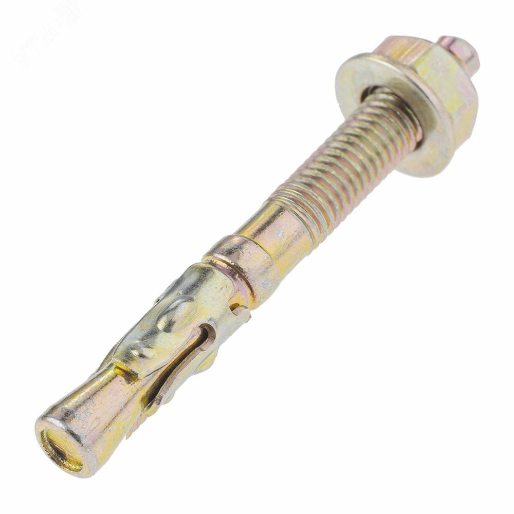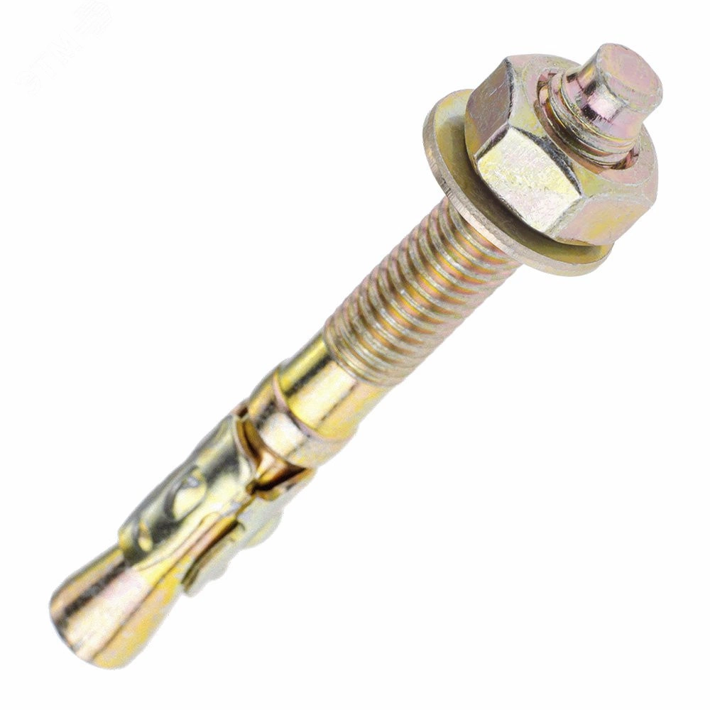 Клиновой анкер представляет собой крепежный элемент в виде шпильки с резьбой, на одном конце которой располагается шайба с гайкой, на другом - распорный узел с муфтой в форме конуса. Предназначен для крепления разнообразных конструкций к бетону, кирпичу или природному камню.