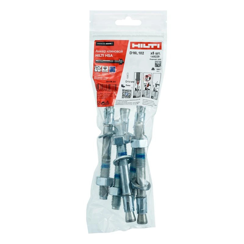 Полное описание: Анкер клиновой HSA M16х102 5 2004161 (уп.5шт) Hilti 149229
