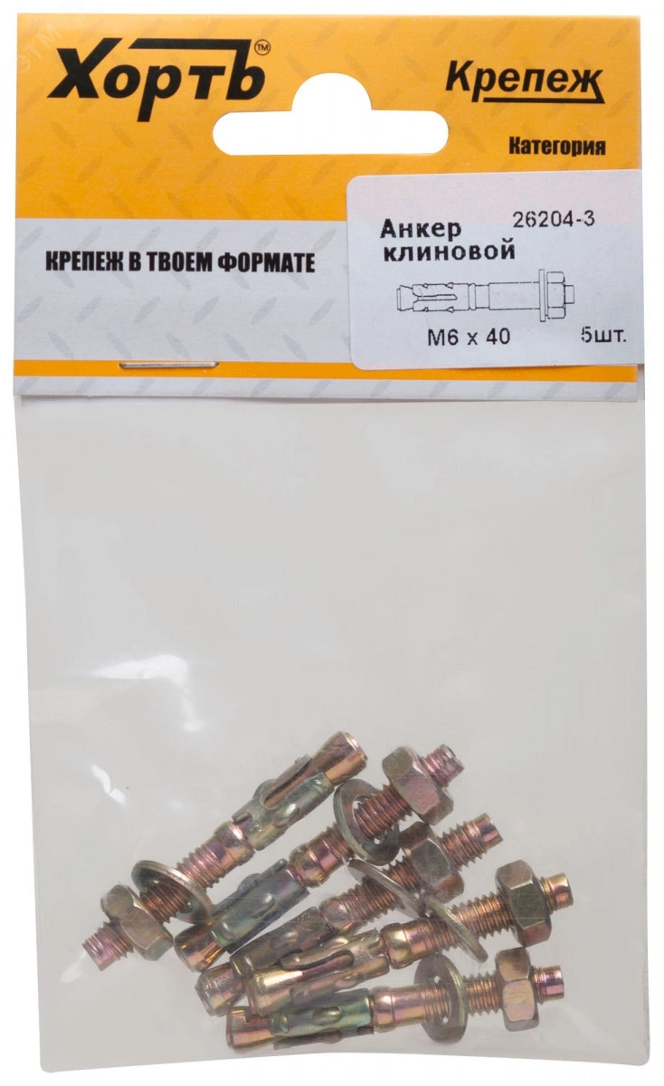 Клиновой анкер представляет собой крепежный элемент в виде шпильки с резьбой, на одном конце которой располагается шайба с гайкой, на другом - распорный узел с муфтой в форме конуса. Предназначен для крепления разнообразных конструкций к бетону, кирпичу или природному камню.
